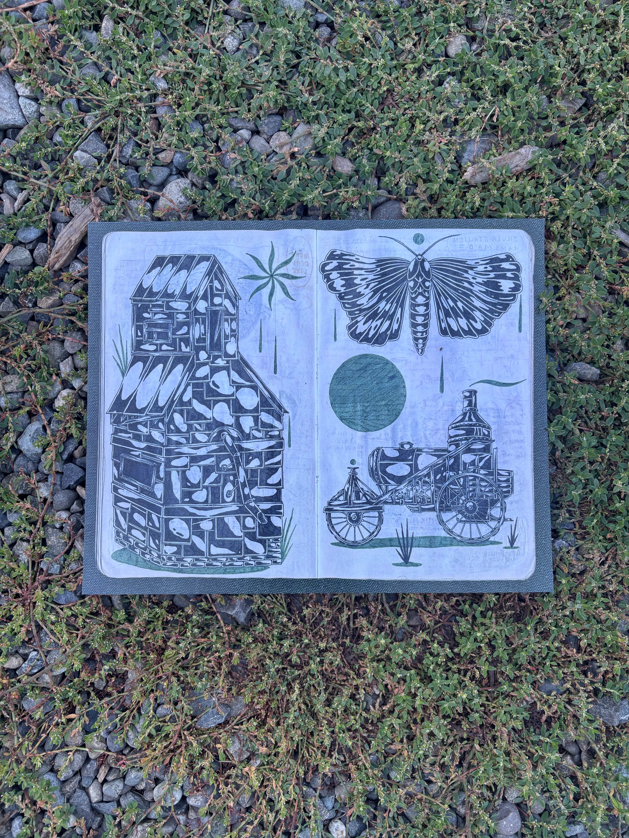5 different sketchbook illustrations on a 8” x 10” sturdy, matte cardstock. You can grab one of ‘em or a few or the entire bundle, which is another option in the shop:)